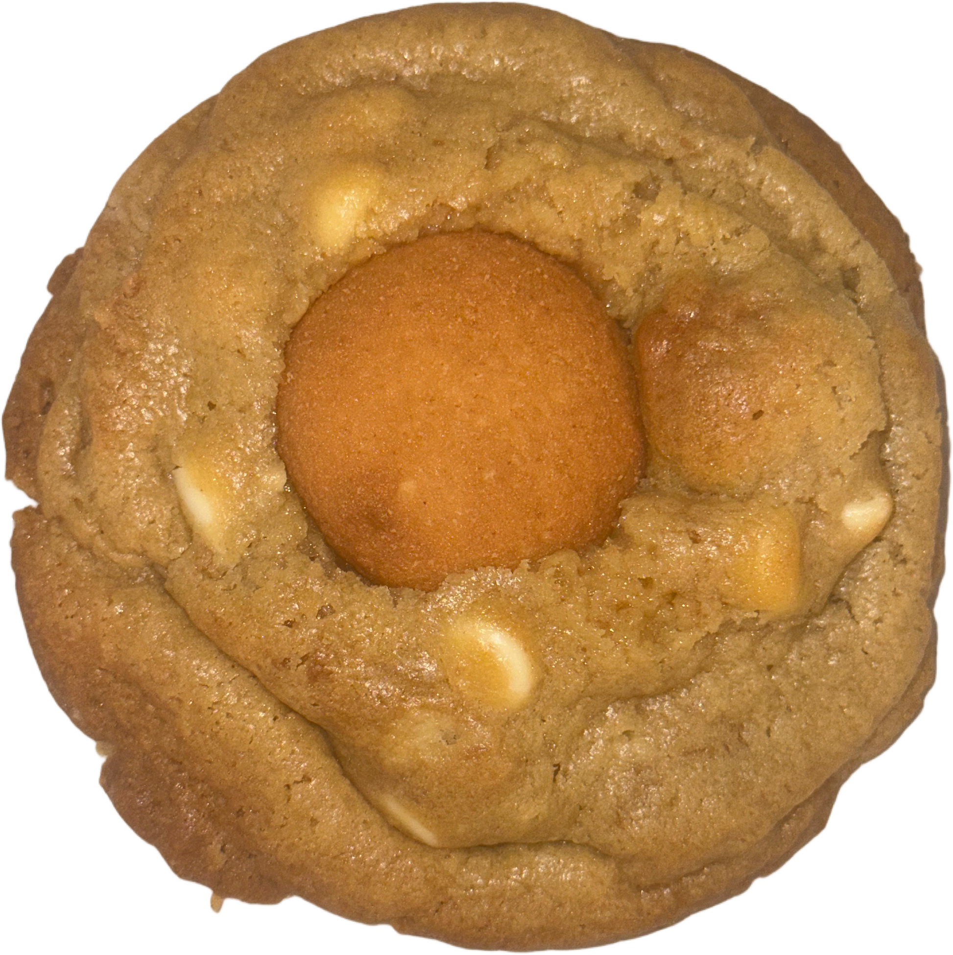 Soft on the inside and crispy on the outside. This 6oz. Banana Pudding cookie is an absolute dream! Topped with a vanilla wafer and filled with white chocolate chips. The best Banana Pudding cookie ever!